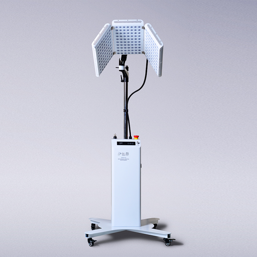 头部生物光子补光仪,它是采用高纯度,高功率的红蓝光频率的光谱波段,直接刺激表皮下蛋白质再生,而且能量密度很低,光子触发身体把光子能量转换为细胞能量,同时没有热效应产生,为新生细胞提供了良好的环境,促进细胞的再生,增强头皮毛母细胞和色素细胞的活性!